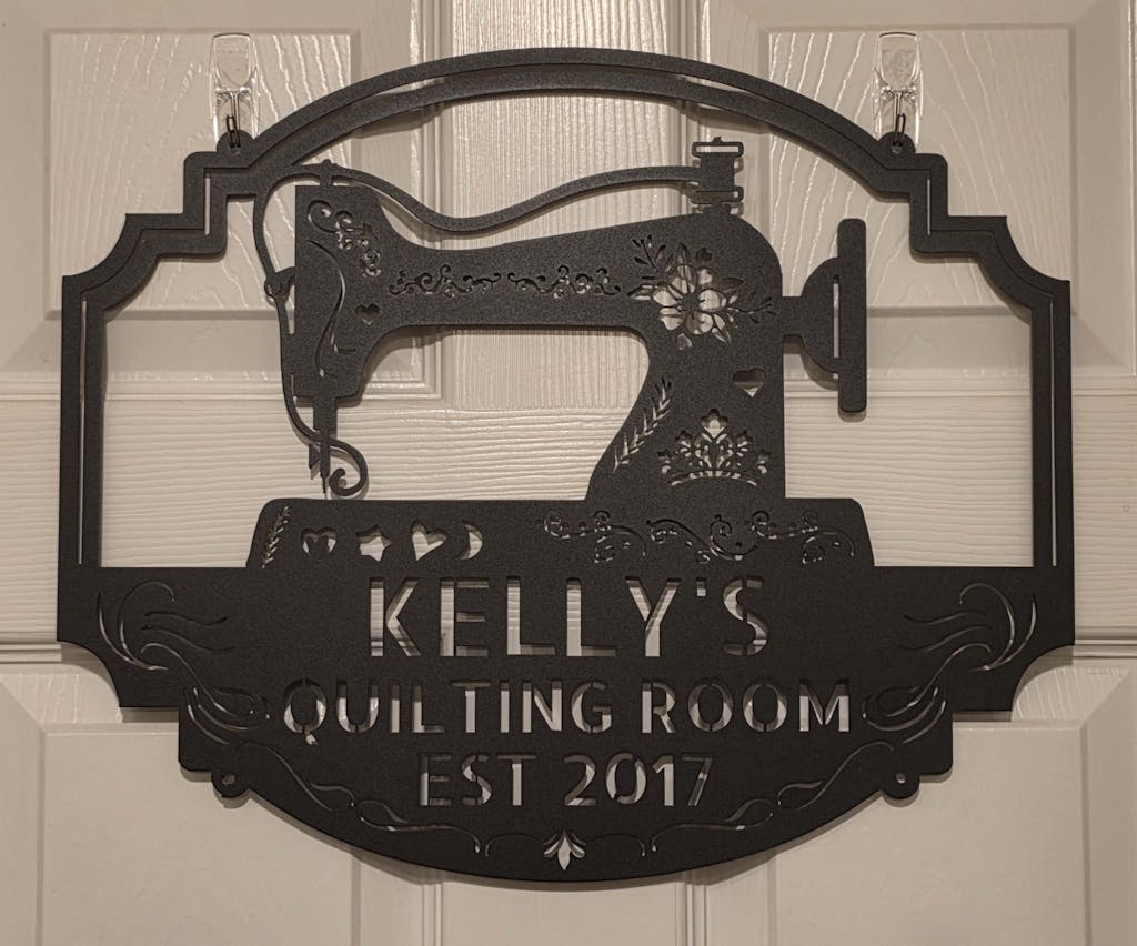 High quality material with clean and well defined metalwork makes this sign an impressive display in the quilt shop…